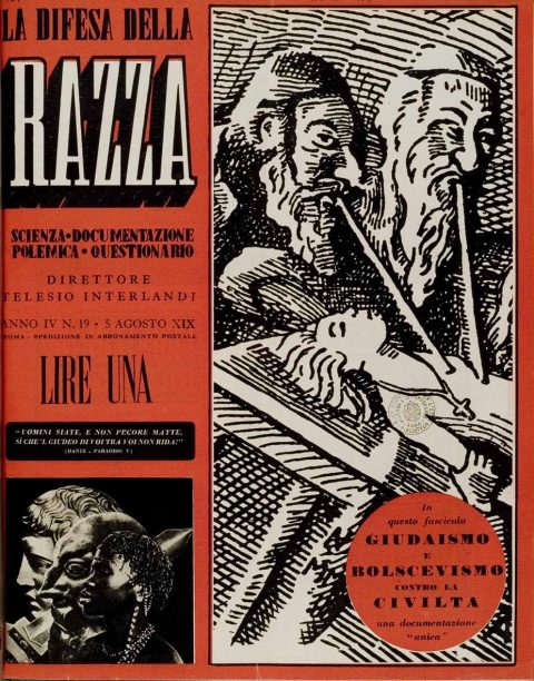 - 14 luglio 1938: «Manifesto della razza», pubblicato in forma anonima da un gruppo di dieci «scienziati» sul Giornale d’Italia con il titolo “Il Fascismo e i problemi della razza”; il manifesto venne ripreso il 5 agosto 1938 con il titolo «Manifesto degli scienziati razzisti», nel «famigerato quindicinale» (R. De Felice) La difesa della razza (Figura 3), diretto da Telesio Interlandi (1894-1965), n.1, e qui firmato da dieci scienziati.